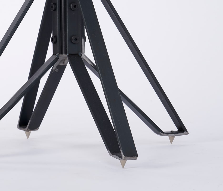 Hand-welded, heavy duty steel tripod base, weighing in at nearly 25 pounds each. Our sturdy stands reliably support 200+ pound monitors.